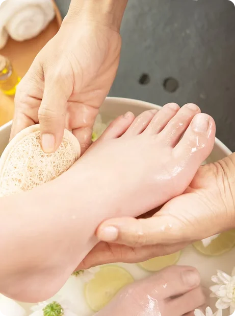 Servicio profesional de cuidado y embellecimiento de pies que incluye limpieza profunda, corte y limado de uñas, tratamiento de cutículas, exfoliación, hidratación y esmaltado. Ideal para mantener pies saludables, suaves y con una apariencia impecable durante más tiempo.